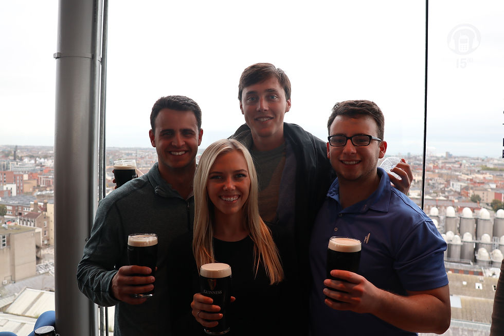 After this we walked back through town along the River Liffey, Dublin’s main water supply. We stopped for lunch next to the river at a nice tavern. I ordered a bowl of Irish potato and sausage stew while Abby got “the best salad she’s had so far in Europe”. After lunch we headed to The Irish Emigration Museum. This was quite a different opportunity considering being American we learn extensively of immigration in our history. However the story of Irish history includes lots of emigration and fleeing their country. Due to many unfortunate circumstances that the Irish people have endured, masses and masses of millions of people have moved from Ireland over the last few hundred years. Although it can be dark and mildly depressing to go through the details of why, the museum is very interesting and quite a unique educational experience. After the Emigration Museum it was time for a happy and exciting activity. We walked through town to the Guinness Storehouse. The Guinness Storehouse embodies the entire Guinness experience. From the history of the founding to the details of how it is made this seven-floor building, five-floor museum is incredible. It shows the classic Guinness model in addition to the newly developed lagers. The most exceptional thing I saw there was the actually piece of paper of the 9,000 year lease that Arthur Guinness signed in 1759. Don’t worry; the tour is finished with a free pint of Guinness at the top.